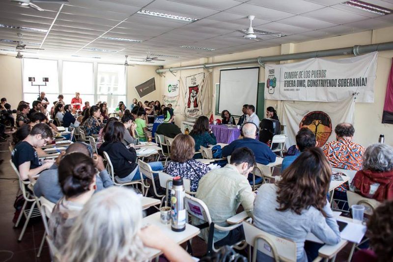 Para ello, convocamos a realizar una Cumbre de los Pueblos en la ciudad de Buenos Aires que colabore en la articulación de la resistencia contra el llamado ´libre comercio´ que sólo genera políticas de explotación y expoliación de nuestros pueblos y de la naturaleza, y que avance en visibilizar y discutir las alternativas a este sistema productivo y comercial“. (Aquí la declaración completa: https://fueraomc.org/about/)